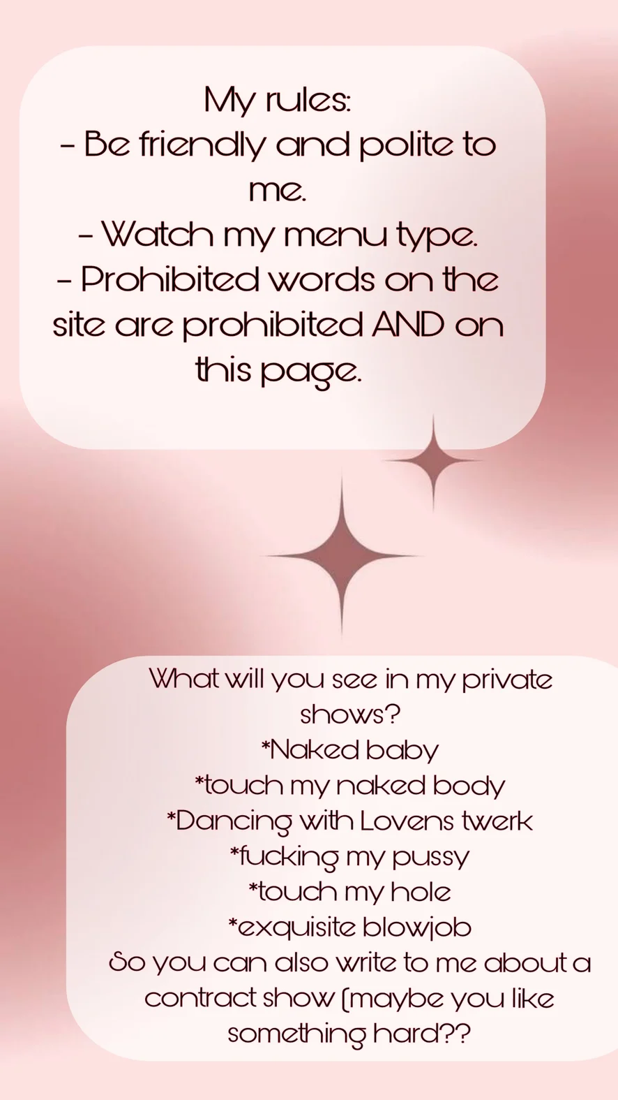 Ahegao, Dildo or Vibrator, Smoking, Twerk, Striptease, Tittyfuck, Masturbation, Foot Fetish, Upskirt, Sex Toys, Facesitting, Fisting, Cowgirl, Blowjob, Camel Toe, Dirty Talk, Flashing, Spanking, Erotic Dance, Fingering, Orgasm, Doggy Style, Humiliation, Topless